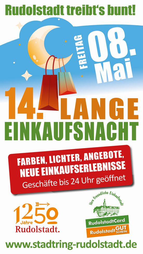 14. Lange Einkaufsnacht am 8. Mai - „Rudolstadt treibt’s bunt!“